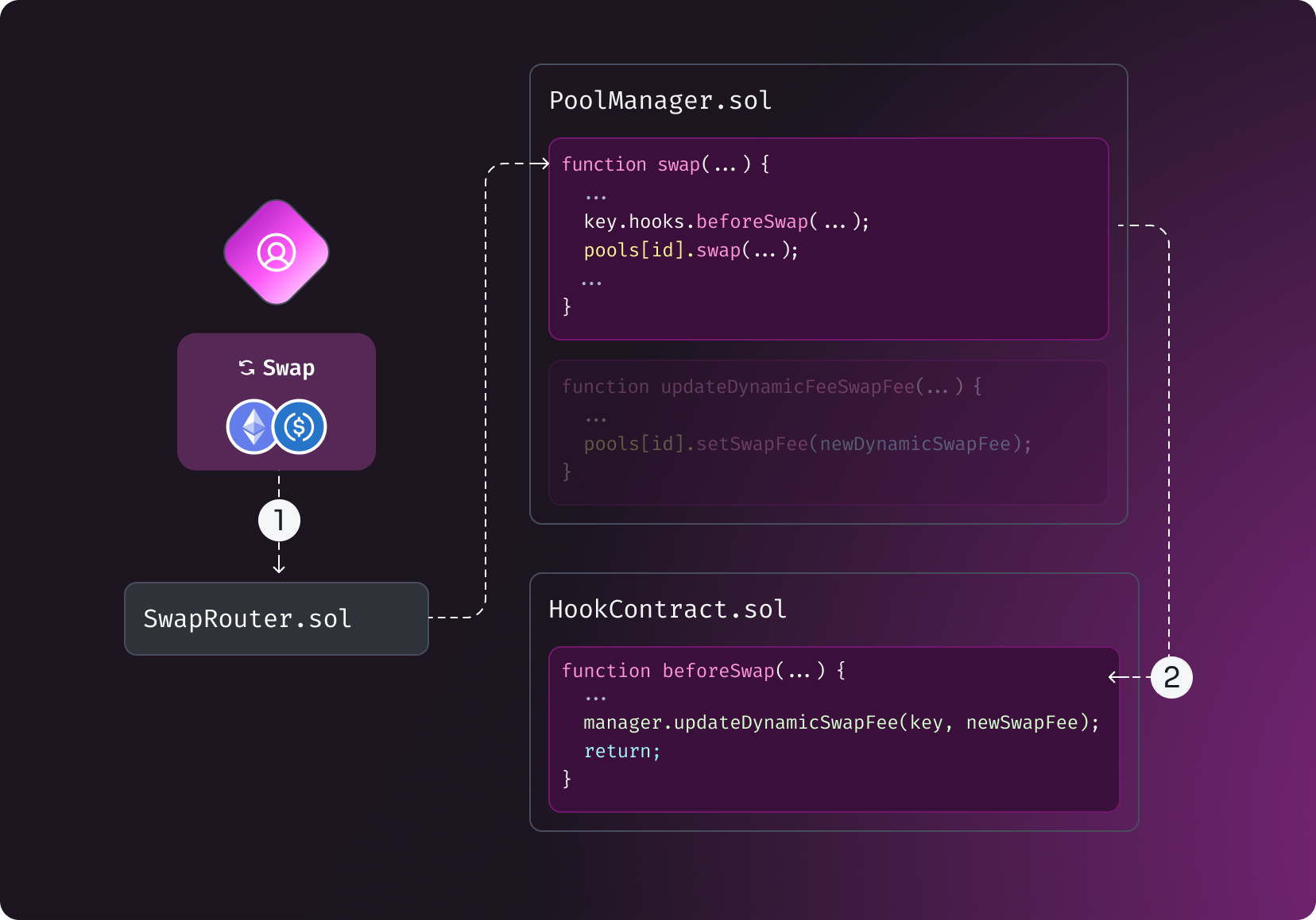 Unlike the static fee tiers in Uniswap v3 (0.05%, 0.30%, 1.0%) or the single fee in v2, dynamic fees in v4 offer much more flexibility. Dynamic fees can: